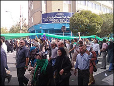 معترضان در تهران امکان نزدیک شدن به دانشگاه تهران را نیافتند یک شاهد عینی به بی بی سی گفت خیابان های اطراف دانشگاه تهران مسدود شده و به جمعیت معترض اجازه نزدیک شدن به محوطه برگزاری محوطه نماز جمعه داده نمی شود. خبرگزاری رویترز به نقل از شاهدی عینی گزارشی از ضرب و شتم معترضان توسط نیروهای امنیتی داده است و به نقل از این شاهد نوشته "بیش از 10 نفر توسط این نیروها دستگیر شدند." این خبرگزاری همچنین از درگیری میان 'طرفداران محمود احمدی نژاد' و معترضان خبر داده و گزارش هایی پراکنده از شلیک گاز اشک آور در میدان ولیعصر و بلوار کشاورز در تهران منتشر شده است. خبرگزاری فرانسه شمار طرفداران میرحسین موسوی در این راهپیمایی را "ده ها هزار نفر" گزارش کرده و نوشته در میدان ولیعصر طرفداران هر دو سو حضور داشتند. به گزارش این منبع خبری طرفداران آقای موسوی شعار "مرگ بر دیکتاتور" سرداده بودند و طرفداران محمود احمدی نژاد هم که در همین مکان اقدام به برگزاری اجتماع کرده بودند، مطابق شعارهای معمول روز قدس "مرگ بر آمریکا" و "مرگ بر اسرائیل" می گفتند. این خبرگزاری نوشته طرفداران دو طرف با مشت به یکدیگر حمله ور شدند و از یک شاهد عینی نقل کرده است که پلیس در ابتدا تلاشی برای خاتمه دادن به درگیری انجام نداد. ماموران پلیس در آستانه این راهپیمایی در شهر تهران مستقر شدند. روز گذشته سپاه پاسداران در اطلاعیه ای در مورد سر دادن "شعارهای انحرافی" و همراه داشتن نماد سبز در جریان راهپیمایی روز قدس هشدار داد، اما هنوز گزارشی از نحوه حضور ماموران بسیج وابسته به این نهاد نظامی در خیابان ها مخابره نشده است. منبع: سايت بی بی سی http://www.bbc.co.uk/persian/iran/2009/09/090918_ba-quds-rally.shtml