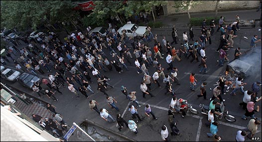 حسین موسوی در تهران در حالي كه شعار […] سرداده بودند از دست نيروهاي پليس