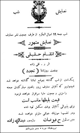 شيخ محمد خيابانی از طرفداران جدی هنر تئاتر و موسيقی بود و طی فعاليت های اجتماعی خود از هيچ کوششی در ترويج هنرهای خلقی کوتاهی نمی کرد. وی در آن زمان در شهرداری تبريز شرايطی را به وجود آورده بود که واحدهای هنری برای ايجاد تئاتر يا گروه های موسيقی کمک های دولتی يا سوبسيد دريافت کنند