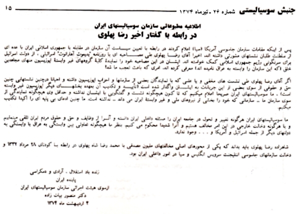 ـ به تاريخ ۴ ارديبهشت ماه ١٣٧۴ ـ در رابطه با گفتار رضا پهلوی