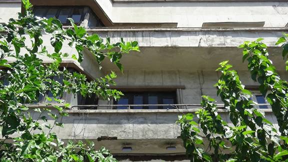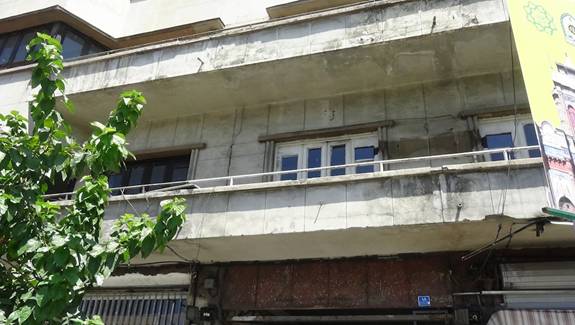 ۳ و ۴- نمای ساختمان و بالکنی در ضلع شمال غربی میدان بهارستان که در دوران زمامداری مصدق دفتر روزنامه کشور بوده است