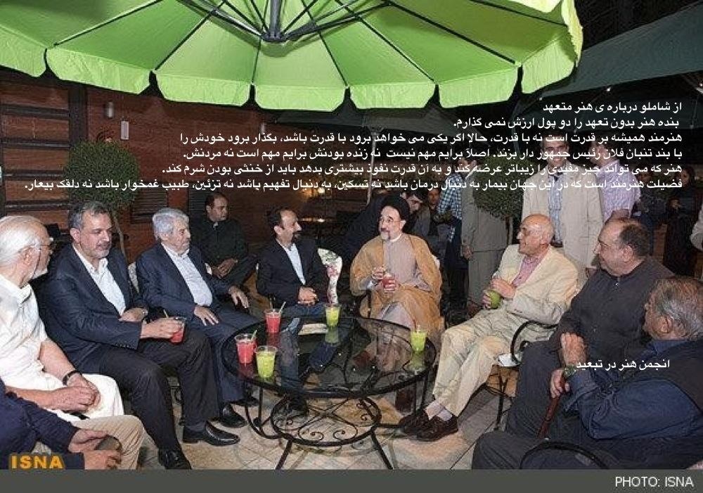 بنده هنر بدون تعهد را دو پول ارزش نمی گذارم. هنرمند هميشه بر قدرت است نه با قدرت، حالا اگر يکی می خواهد برود با قدرت باشد، بگذار برود خودش را با بند تنبان فلان رئيس جمهور دار بزند. اصلآ برايم مهم نيست نه زنده بودنش برايم مهم است نه مردنش. هنر که می تواند چيز مفيدی را زيباتر عرضه کند و به آن قدرت نفوذ بيشتری بدهد بايد از خنثی بودن شرم کند. فضيلت هنرمند است که در اين جهان بيمار به دنبال درمان باشد نه تسکين، به دنبال تفهيم باشد نه تزئين، طبيب غمخوار باشد نه دلقک بيعار.