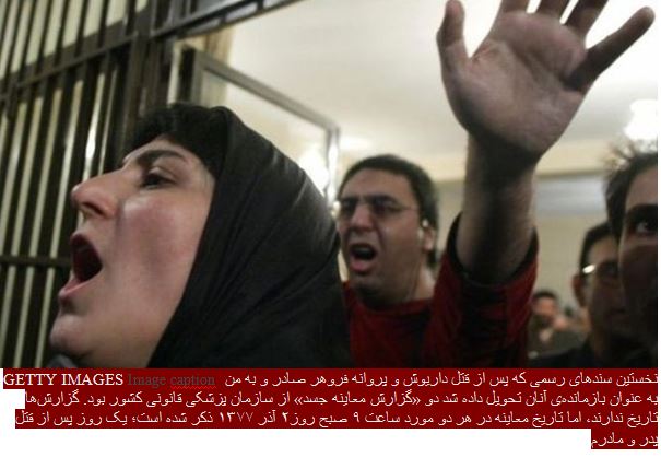 کشتهشدگان را در زندگیشان باید جست مادرم اگر زنده بود این متن را برایش میخواندم تا او شورمندترین پایان را برای آن بنویسد و از آن چشمهی جوشان امید که در سینه داشت در رگهای آن جاری کند. پدرم اگر زنده بود، با آن نگاه نافذش چشم به من میدوخت و میگفت: بابا جان، قوی باش! کاش میدانست که در این بیست سال چقدر سعی کردهام که قوی باشم و چقدر به یادش بودهام. کشتهشدگان را در زندگیشان باید جست و به یاد آورد؛ در آنچه با تلاش و جسارت خود بر تاریخ آزادیخواهی و عدالتجویی جامعهی ما افزودهاند. یک سال پیش از قتل داریوش و پروانه فروهر در آذر ۱۳۷۶، حزب ملت ایران که آن دو، یکی دبیر و دیگری عضو شورای رهبریاش بودند، اعلامیهای منتشر کرد با عنوان "در راستای لغو حکم اعدام". این اعلامیه برای من یکی از گرامیترین ماندگارهای زندگی سیاسی پدر و مادرم است. بارها وقتی سعی کردهام که قوی باشم، به این متن رجوع کردهام و از روح آن مدد گرفتهام. در متن آمده است: "چون زندگی نخستین و والاترین دادهی ایزدی به هر انسان است و هیچ فرد یا جمع یا نهادی به هیچ بهانهای حق سلب آن را ندارد؛ … چون کیفر اعدام از دید اجتماعی بیدادگرانه و ضدانسانی، از دید اخلاقی، خشن و ناپسند و، از دید قضائی، تردیدآمیز و اثر آن برگشتناپذیر است؛ چون روشن شده کیفر اعدام نه تنها بازدارندهی تبهکاری نیست، که اهرم اختناق و تصفیهحسابهای سیاسی و سرکوب دگراندیشان در بسیاری از سامانهای یکهتازانهی فراگیر میباشد؛ و از آنجا که جمهوری اسلامی در سالیان دراز فرمانروایی واپسگرایانهی خود یکی از سیاهترین کارنامههای دولتی را در کاربرد کیفر اعدام، چه در مورد اتهامهای عقیدتی و چه به لحاظ بزههای عمومی، دارد و اکنون، در جمهوری اسلامی، کیفر اعدام به گونهی ابزار وحشتآفرینی در راستای نگهداشت جو خفقان و پایمال کردن آزادیهای شناختهشده برای انسان در آمده است؛ ...حزب ملت ایران خواهان حذف کیفر اعدام از همه قانونهای جزایی کشور است تا هیچ فرمانروایی نتواند با دستاویز آن، بر خلاف خواست مردم، پایههای قدرت خود را استوار دارد." به نقل از سایت بی بی سی تاريخ انتشار در سايت سازمان سوسياليستهای ايران ـ سوسیالیستهای طرفدار راه مصدق درروز پنجشنبه ۱ آذر ۱۳۹۷ - ۲۲ نوامبر ۲۰۱۸ درهمین رابطه ــ در بیستمین سالگرد شهادت پروانه وداریوش فروهریاد ونام آنان را گرامی میداریم ـ تهران – شورای مرکزی جبهه ملی ایران http://www.ois-iran.com/2018/azar-1397/ois-iran-8144-dar_bistomin_salgarde_shahadate-Forouharha.html ــ قتل های زنجیره ای چطور افشا شدند؟ ــ محمد بلوری روزنامه نگار www.ois-iran.com/2018/azar-1397/ois-iran-8142-ghatlhaye_zandjirahie....html ــ دو ساعت سکوت در نوزدهمین سالگرد قتل پروانه و داریوش فروهر http://www.ois-iran.com/2017/azar-1396/ois-iran-7679-maraseme_Foraharha_1396_dar_tehran.htm ــ واکنش پرستو فروهر به حسامالدین آشنا: تحریف تاریخ مبارزات فروهرها بی انصافی است www.ois-iran.com/2018/aban-1397/ois-iran-8130-wakoneshe_Parastou_Forouhar-brh....html ــ پرستو فروهر؛ بازخوانی دو گزارش از معاینه جسد پدر و مادرم http://www.ois-iran.com/2018/azar-1397/ois-iran-8143-Parastou_Forouhar-bazkhani-do-gozaresh....html