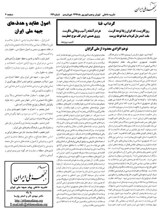 نشریه پیام جبهه ملی ایران شماره ۱۹۳ شهریورماه ۱۳۹۷ ــ نشریه «پیام جبهه ملی ایران ـ شماره ١٩٢ ـ پنجم مرداد ماه ١٣٩٧ http://www.ois-iran.com/2018/mordad-1397/ois-iran-8009-nashriyahe_Payame_Jebheyemelliiran-Nr.192.pdf ـ پیشنهادات جبهه ملی ایران به هیئت حاکمه جمهوری اسلامی