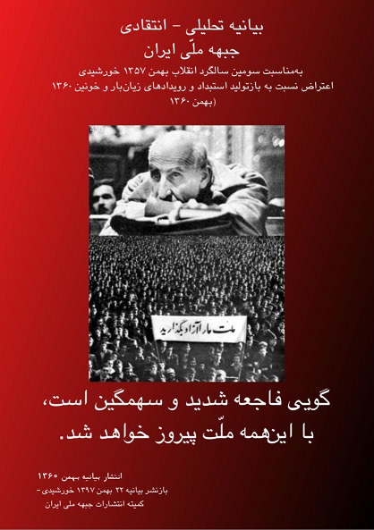 بهمناسبت سومین سالگرد انقلاب بهمن ۱۳۵۷ خورشیدی اعتراض نسبت به بازتولید استبداد و رویدادهای زیانبار و خونین ۱۳۶۰ (بهمن ۱۳۶۰) بانضمام