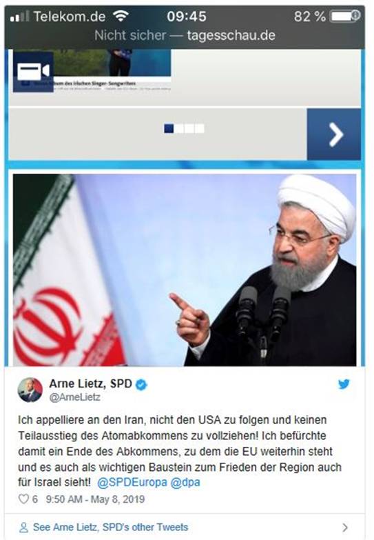 ماتیاس هُن از حزب چپ آلمان و عضو کمیته دفاعی در مجلس این کشور هم در توییتر اروپاییها را فراخوانده است که علیه یک "ماجراجویی نظامی" به روشنی موضع بگیرند. آکسل فوس ، سیاستمدار آلمانی از حزب سوسیال مسیحی این کشور هم در مصاحبه با رادیو "دویچلند فونک" با اشاره به "وضعیت خطرناکی" که "به ویژه رفتار آمریکا" به وجود آورده است، میگوید: «اتحادیه اروپا کماکان تلاش خودش را برای جلوگیری از شکست برجام به کار خواهد بست.» "گام بعدی میتواند به جنگ ختم شود" میشاییل لودرز، کارشناس مسائل خاورمیانه هم در گفتگو با "دویچلند فونک" خروج ایران از برجام را قدمی دیگر در جهت وخامت اوضاع میداند. به اعتقاد او " با خروج آمریکا از برجام در یک سال پیش، ایرانیها دیگر نمیخواستند منفعلانه نظارهگر این باشند که چه بر سرشان میآید". به اعتقاد او اما تهران تمام تلاش خود را به کار خواهد بست تا مانع شکست کامل برجام شود. چون به گفته لودرز، خروج کامل، "بهترین بهانه برای حمله است." این کارشناس مسائل خاورمیانه معتقد است: «دیگر نه امیدی به نجات برجام هست و نه پیشنهادی برای مذاکره. در وضعیتی هستیم که گام بعدی می تواند به جنگ ختم شود.» به نقل از سایت دویچه وله