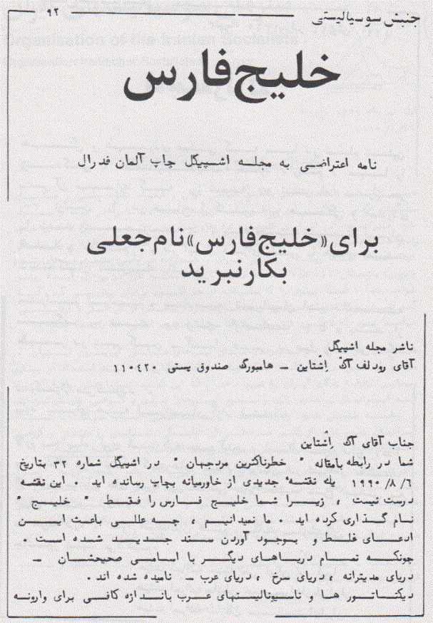 تاريخ انتشار در سايت سازمان سوسياليستهای ايران ـ سوسیالیستهای طرفدار راه مصدق در روز سه شنبه ٨ بهمن ماه ١٣٩٨ / ٢٨ ژانویه ٢٠٢٠درهمین رابطه ـ ترجمه متن نامه سازمان سوسیالیستهای ایران به وزیر امورخارجه آلمان در اعتراض به تغییرنام خلیج فارس جناب آقای دکترفرانک ـ والتر اشتاین مایر http://www.ois-iran.com/2015/mehr-1394/ois-iran-2028-Namahe_OIS_be_DR_Steinmeier.htm