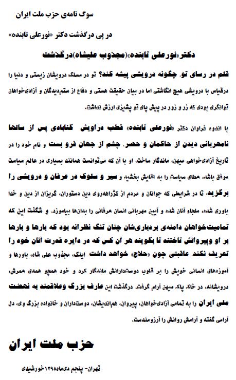 تاريخ انتشار در سايت سازمان سوسياليستهای ايران ـ سوسیالیستهای طرفدار راه مصدق در روز پنج شنبه ١٩ دی ماه ١٣٩٨ / ٩ ژانویه ٢٠٢٠