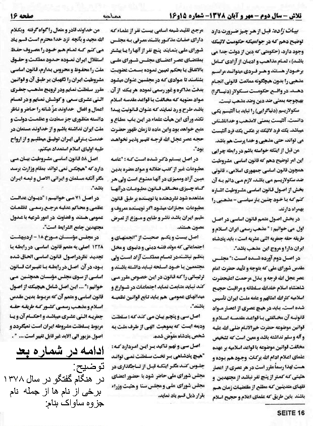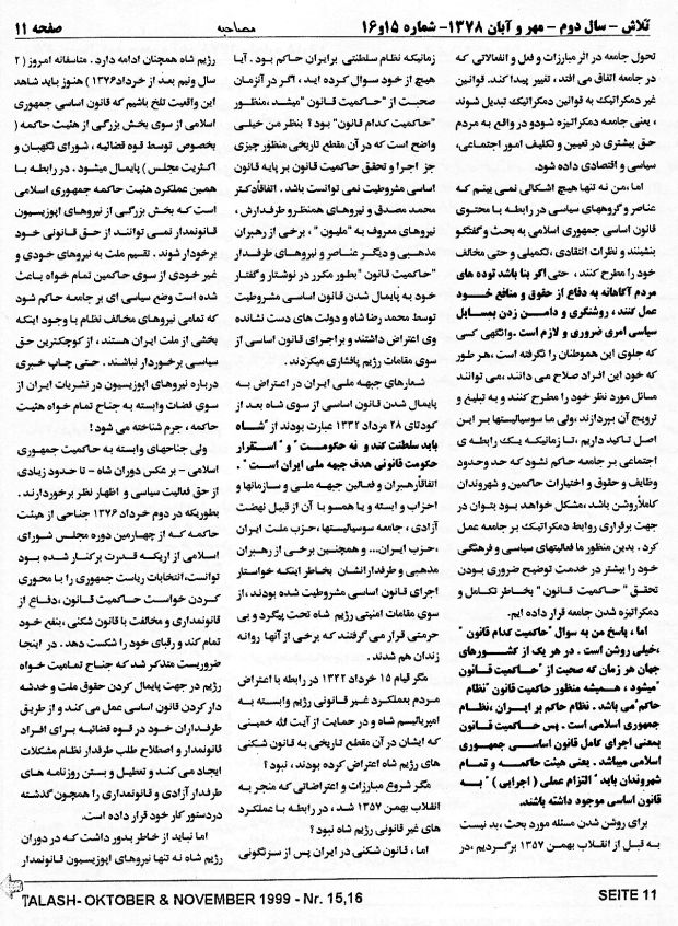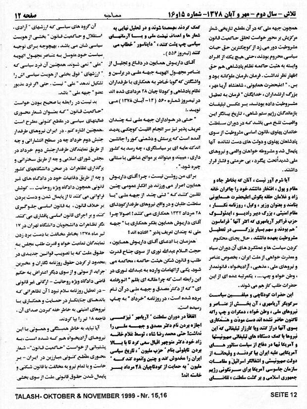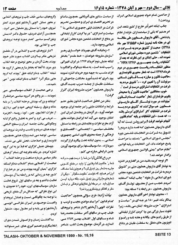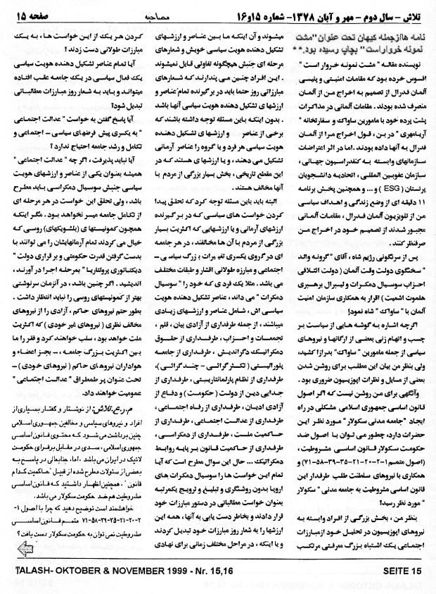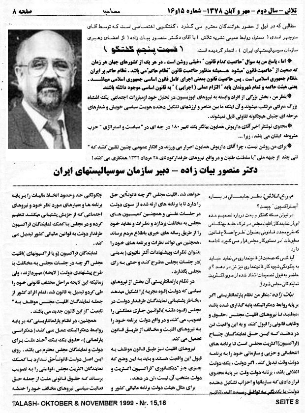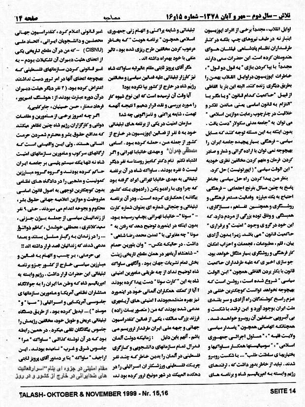 « اسرار فعاليتهای ضد ايرانی در خارج از کشور »را بخاطر نداشتم. حال که انتشار مجدد گفتگو با نشريه تلاش (چاپ برمن) از طريق شبکه اينترنتی انجام می گيرد، ضروری دانستم تا آدرس اينترنتی آن جزوه را به متن مصاحبه اضافه کنم.آدرس لینک به جزوه تبليغاتی ساواک در سايت سازمان سوسياليستهای ايران: http://www.tvpn.de/ois/ois-iran-212-a.htm