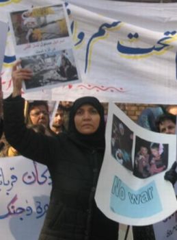 سردادن شعارهایی همچون "صلح، صلح، آتش بس" خواستار توقف